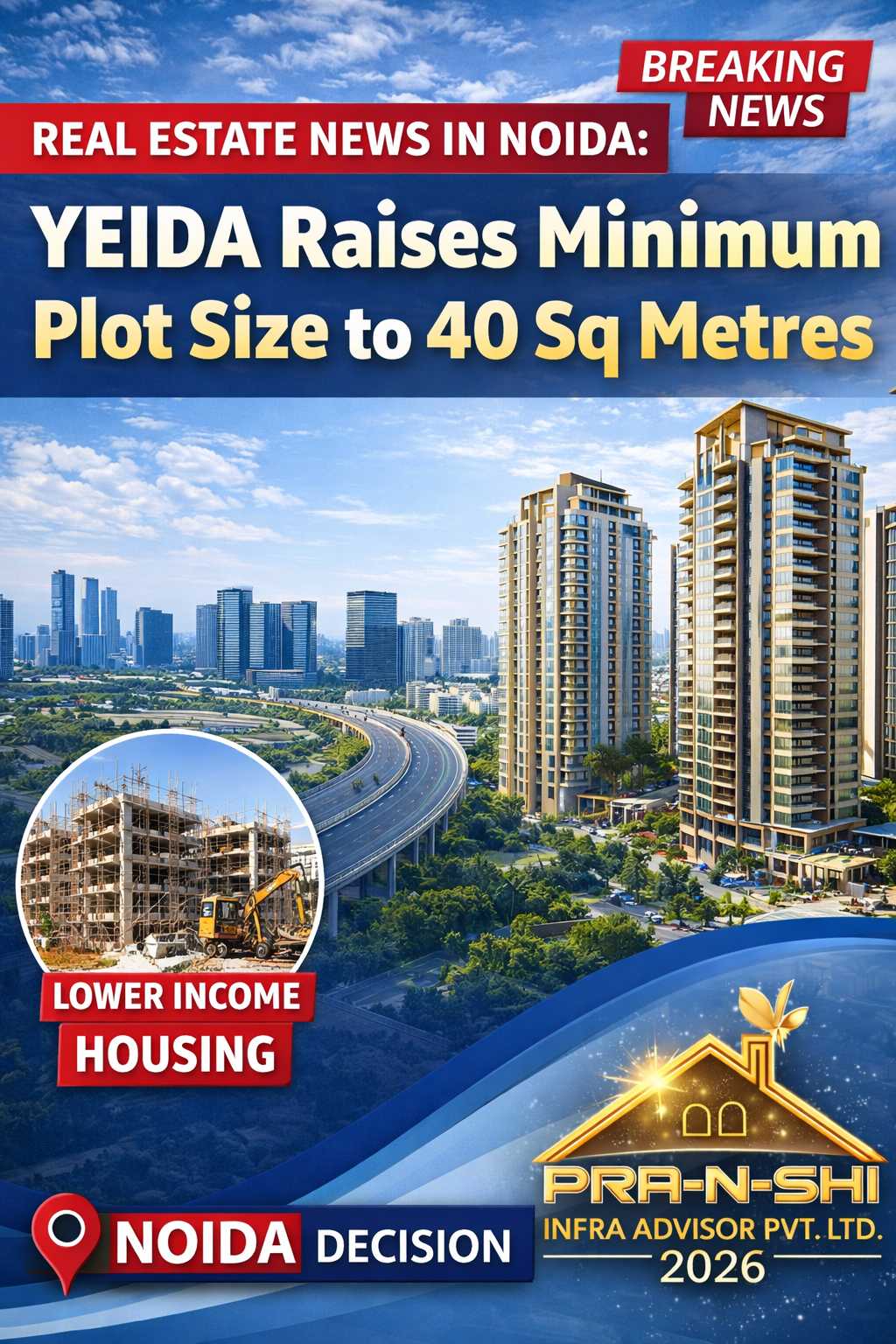 In a significant move aimed at improving living standards for economically weaker and lower-income groups, the Yamuna Expressway Industrial Development Authority (YEIDA) has increased the minimum plot size for lower-income housing to 40 square metres. The decision is expected to positively impact urban planning, housing quality, and long-term livability in the Yamuna Expressway region.