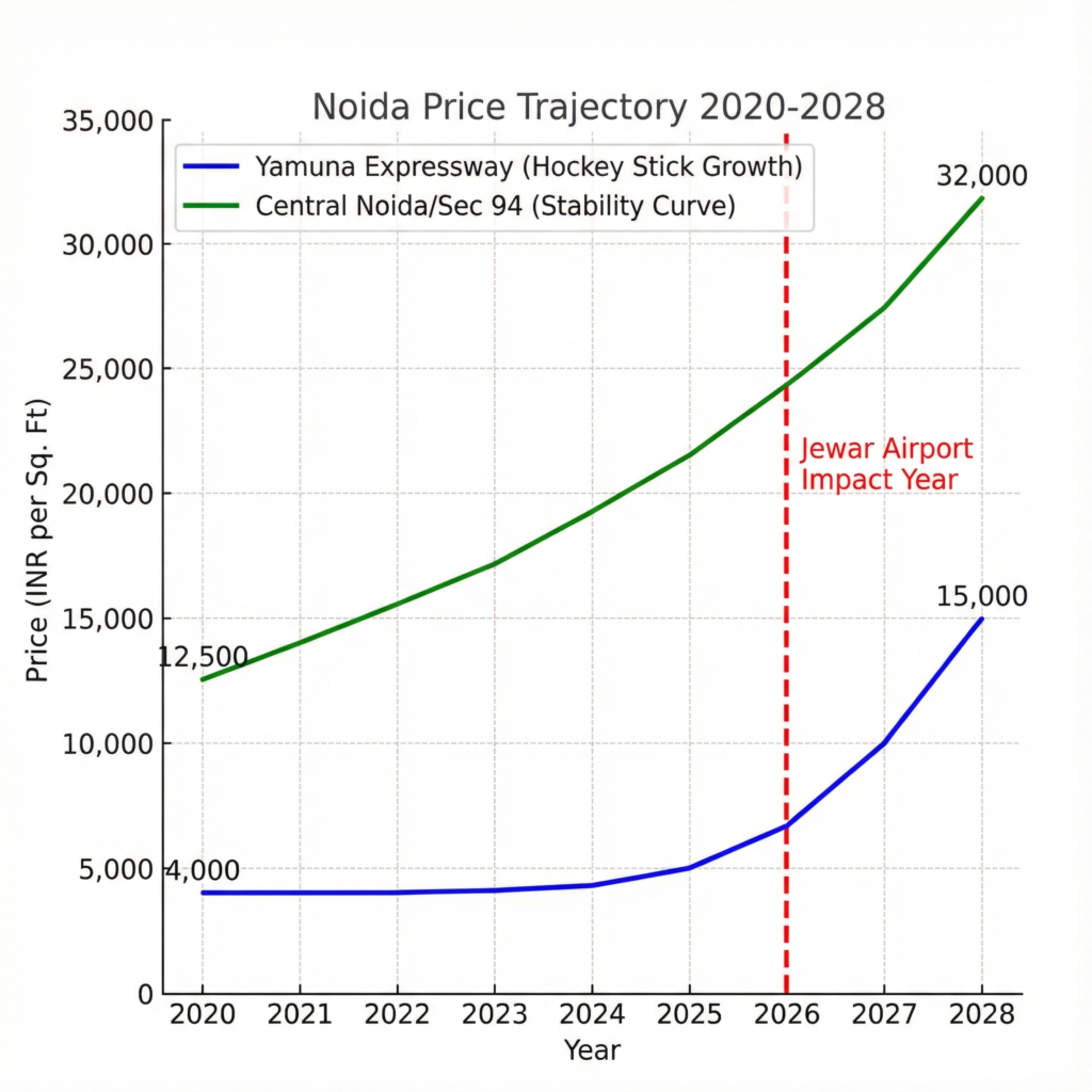 The trajectory is clear. As the first flight takes off from Jewar in late 2025/early 2026, the current price points will become history.